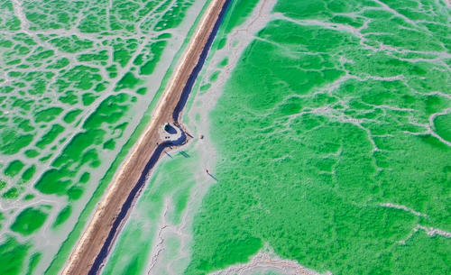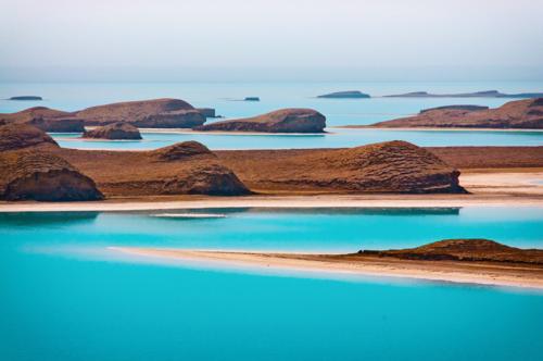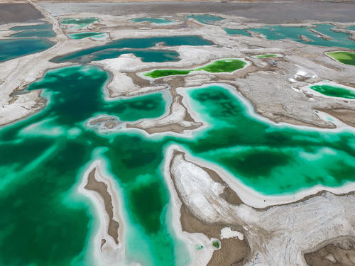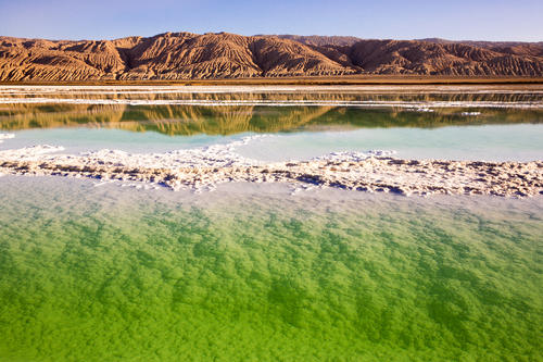 東臺吉乃爾湖的神奇之處在于一條泥路將湖水一分為二,一半是純正的蒂芙尼藍,一半是含鹽量極高的純粹綠;乃爾湖岸邊盡是覆蓋著的白色結晶,湖周圍是大片的雅丹地貌,搭配上顏色干凈到極致的湖水、西北特有的廣闊無垠的天空,純粹而強烈的視覺沖擊,這方圓百里大漠戈壁無人區的珍寶明珠,這只屬于大自然的神秘顏色,讓你仿若來到了世界的盡頭,讓你感受一種歸于自然的內心平靜。