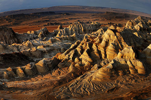 近距離感受俄博梁雅丹你會發現,這里的景色不會重疊,一步一景,景景相應,宛如古代城堡的城墻,筒形拱頂,眺望冷湖俄博梁雅丹,巍然屹立,氣勢磅礴。猶如古堡要塞,形成了一道山上有山,嶺中有嶺的獨特風景,她的原始神秘、她的千姿百態、粗曠荒蠻讓人恍惚來到了一個與世隔絕的仙境,又仿佛面對一個遠古的夢幻。