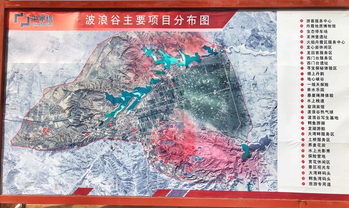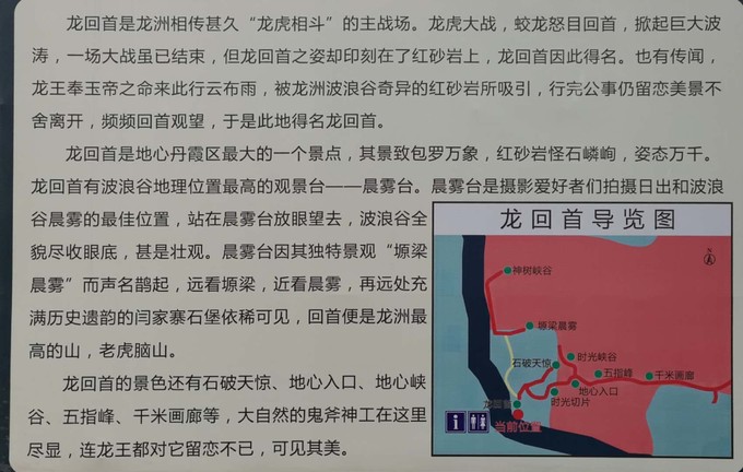 龍洲丹霞目前正在被開發(fā),設在景區(qū)停車場的項目分布圖,表明了未來的規(guī)劃,收費之日不遠了。