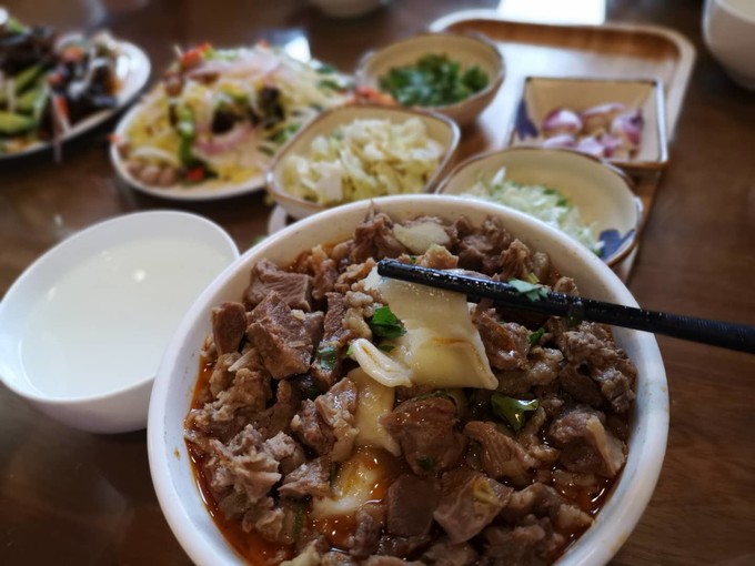 強烈推薦靖邊縣的“龐學勤兄弟羊肉面”!可以選面條或面片,面條端上來滿滿的一層羊肉!優(yōu)質羊肉面大碗37元,小碗34元,羊肉完全不膻,超級香!