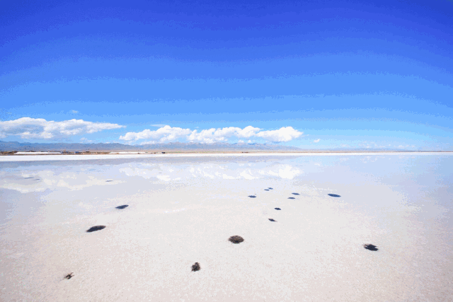 2.在湖中行走一定要注意鹽湖中的鹵水坑,鹽湖中有很多大大小小的鹵水坑,在拍照的時候一定注意腳下不要掉進(jìn)去;