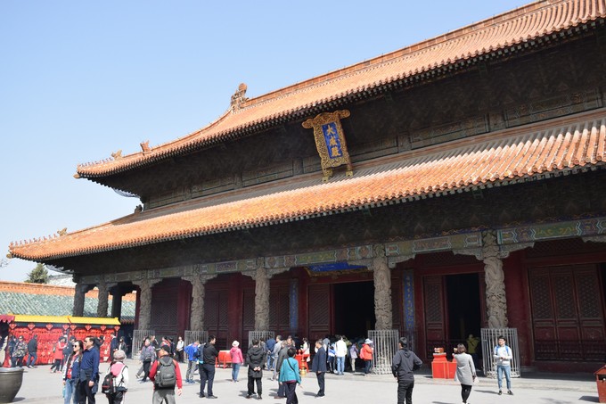 大成殿,孔廟的主體建筑,重檐九脊,擎檐 石柱 二十八根,“大成殿”牌匾為清雍正帝手書,殿內“萬世表”匾額為 清康 熙帝手書。
