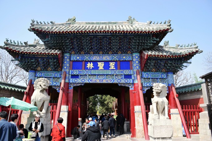 孔廟,始建于春秋時期,歷經兩千多年,歷代均有增修擴建,現存的建筑群絕大部分為明、清時期所建。孔廟,南北長1300多米,東西寬150多米,三路布局,九進院落。為祭祀孔子的廟宇,歷史上曾有12位皇帝親臨此致祭。