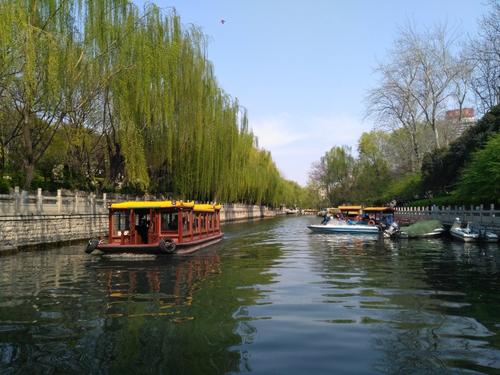 濟南老城的泉水分布最為密集,十大泉群中,僅有老城就占有4個,基本上是現今游船環城一圈的區域:從黑虎泉出發,經泉城廣場—西門—五龍潭—大明湖公園北側—老東門—青龍橋,密布著大大小小100多處天然甘泉,匯流成的護城河流淌到大明湖,與周圍的千佛山、鵲山、華山等構成了獨特的風光,也成為少有的集“山、泉、湖、河、城”于一體的城市,自古就有“家家泉水,戶戶垂柳”、“四面荷花三面柳,一城山色半城湖”的美譽。