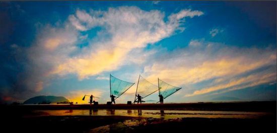 拍攝貼士:這里依山臨海,視野開闊,是拍日落的理想景點。沙灘上,一條彎彎曲曲的水道,小溪流從中穿過,沖刷岀一片復雜多變的紋理,柔美的線條在日落的余輝下呈現出金燦燦的色調,給多彩的沙灘增添幾多生機。東壁的攝影點不僅能拍到氣勢恢宏的日落,也能拍到漁民捕魚織網的場景,更有疑是銀河落九天的優美線條!