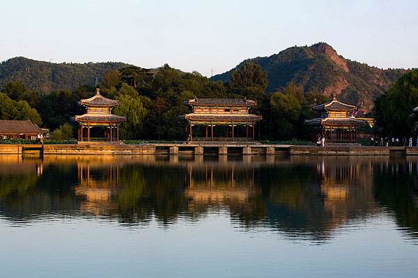 拍完金山嶺長城,赴承德避暑山莊。避暑山莊是中國三大古建筑群之一,它的最大特色是山中有園,園中有山,大小建筑有120多組,其中康熙以四字組成36景,乾隆以三字組成36景,這就是山莊著名的72景。
