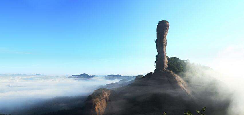 早上7:00出發赴棒槌山,預計7:20到達。拍攝棒槌山的獨具風采的美景。頗為奇妙的是,磬錘峰半腰長著一株高約3米的桑樹,據測這株桑樹與磬錘峰相親相愛已經三百年了,據傳為我國最早之桑樹。峰下有一平臺,東面斷崖有清代密宗雕像。