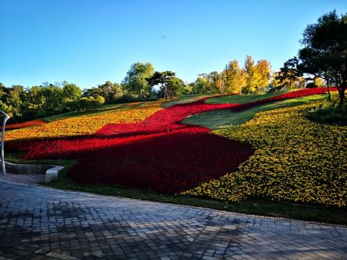 早上從延慶出發,赴北京園博園。北京園博園園區布局為“一軸、兩點、五園”,“一軸”即園博軸,是貫穿主展區的景觀軸線。“兩點”即永定塔和錦繡谷。永定塔為遼金風格的仿古塔,高69.7米,是園博園的標志性建筑;錦繡谷是將一個20多公頃的建筑垃圾填埋坑打造成了花團錦簇的下沉式花谷。“五園”即傳統展園、現代展園、創意展園、國際展園和濕地展園,共有展園69個。