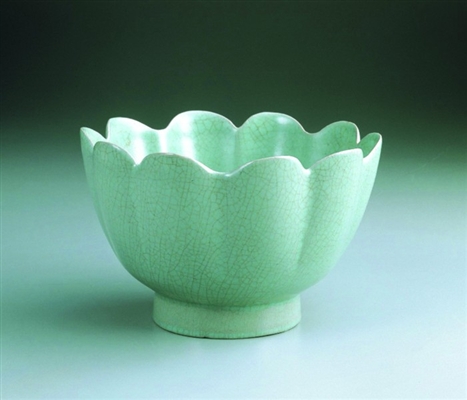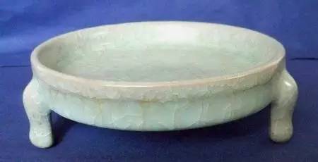 北宋時期官府在汝州設窯場,其產品稱之為“汝窯”。“汝窯”出現的時期在越窯衰敗之后,產品主要供宮中御用,御揀退之件,方許出賣,近尤難得。汝窯胎質細潤,多數象點燃過的香灰色。透過釉底處微微帶些粉色,不同于同時期的其他青瓷,風格獨特,呈現一種淡淡的天青色,有的稍深,有的稍淡,但離不開天青這個基本色調。汝瓷釉汁瑩潤,多豆青、粉青、月白、蔥綠等。通體有細片,底有芝麻細小支釘,是支燒的痕跡。現存故宮博物院的“汝窯弦紋尊(奩)”、洗”,是古陶瓷中罕見的珍品。