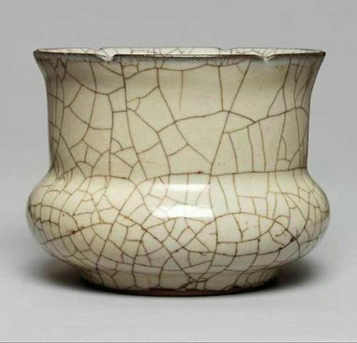 哥窯是宋代南方五大名窯之一,確切窯場到今尚沒有發現。據歷史傳說為章生一、章生二兄弟在兩浙路處州、龍泉縣各建一窯,哥哥建的窯稱為"哥窯",弟弟建的窯稱為"弟窯",也稱章窯、龍泉窯。有的專家認為傳世的宮藏哥窯瓷,實際上是南宋時修內司官窯燒制的。哥窯的主要特征是釉面有大大小小不規則的開裂紋片,俗稱"開片"或"文武片"。細小如魚子的叫"魚子紋",開片呈弧形的叫"蟹爪紋",開片大小相同的叫"百圾碎"。小紋片的紋理呈金黃色,大紋片的紋理呈鐵黑色,故有"金絲鐵線"之說。其中仿北宋官窯的瓷器為黑胎,也具有"紫口鐵足"。 哥窯瓷胎體有厚有薄,釉色主要有粉青、月白、米黃數種,釉面光澤如膚之微汗,是為上品。器形以洗、爐、盤、碗為多。