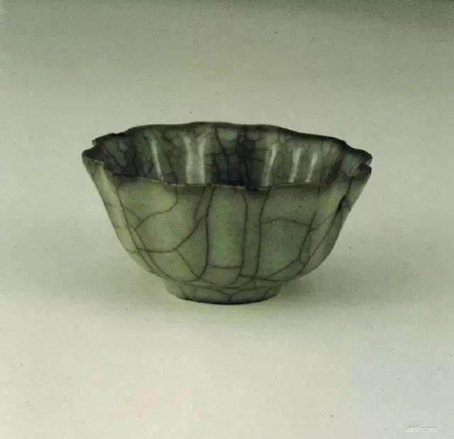 官窯是在宋大觀及政和年間于汴梁所造,青瓷釉色晶瑩惕透,有開裂或呈冰片狀,粉青紫口鐵定是其特色。