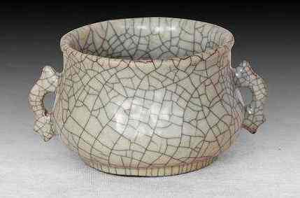 哥窯釉質純粹濃厚,不甚瑩澈,釉內多有氣泡,如珠隱現,故通稱“聚沫攢珠”。釉色寶光內蘊,潤澤如酥。紋片多種多樣,以紋道而稱之有鱔魚紋、黑藍紋、淺黃紋、魚子紋;以紋形而稱之有綱形紋、梅花紋、細碎紋、大小格紋、冰裂紋等,總名為百極碎。哥窯器物傳世的以各式瓶、爐、洗、盤、碗、罐為常見。但哥窯窯址仍未確認,成為中國陶瓷史上的懸案之一。