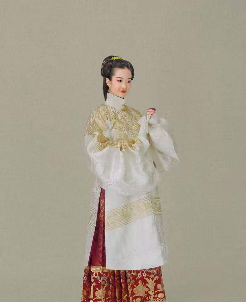 暗綠地織金紗通肩柿蒂形翔鳳短衫妝花紗蟒裙