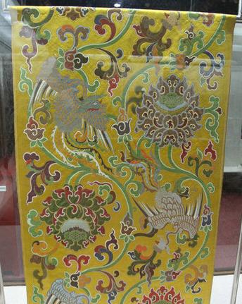 清代黃地織金鳳蓮妝花緞(傳世品)