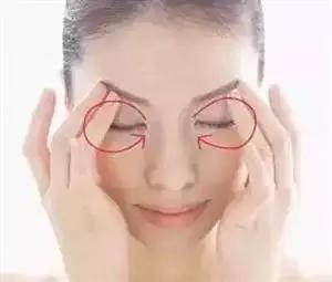 3、揉眼:自尋手部柔軟的部位,揉按眼睛、眼眶四周,促進眼周血液循環,可明目、醒腦,還兼具美容作用。