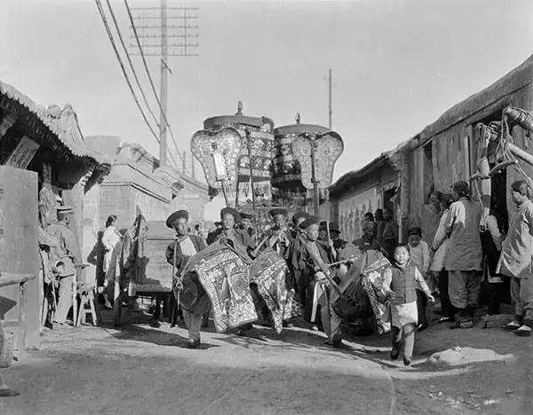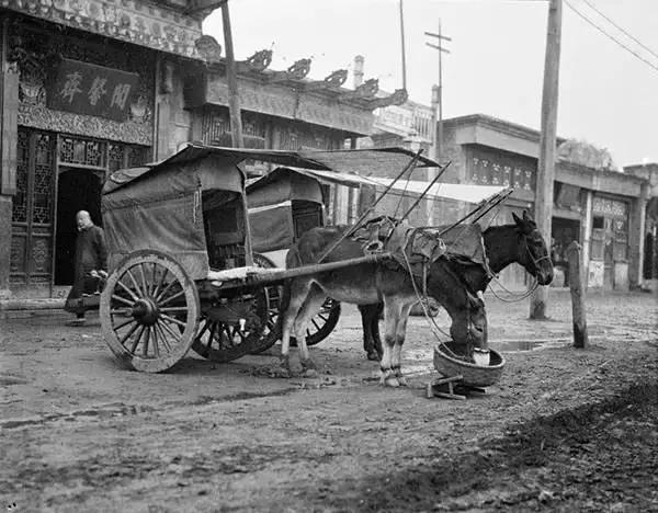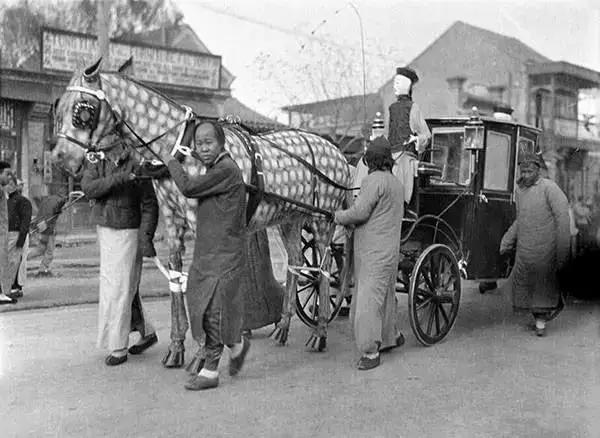 天津,東馬路青年會門前等待新人的馬拉轎車