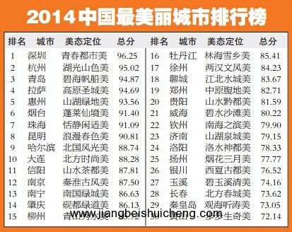 近日,中國城市競爭力研究會公布了2014中國最美麗城市排行榜,山東聊城在全國296座城市中以83.67的高分位居第18位。我省共有5座城市入選前30名,除聊城外還有第3位的青島、第6位的煙臺、第21位的威海和第23位的濟南。