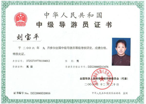 2006年公司董事長劉寶平獲得中華人民共和國國家旅游局授予的“全國優秀導游員”稱號,并受到吳儀副總理的親切接見。全國優秀導游員帶隊管理,相信我們能為您提供最優秀的旅游服務;