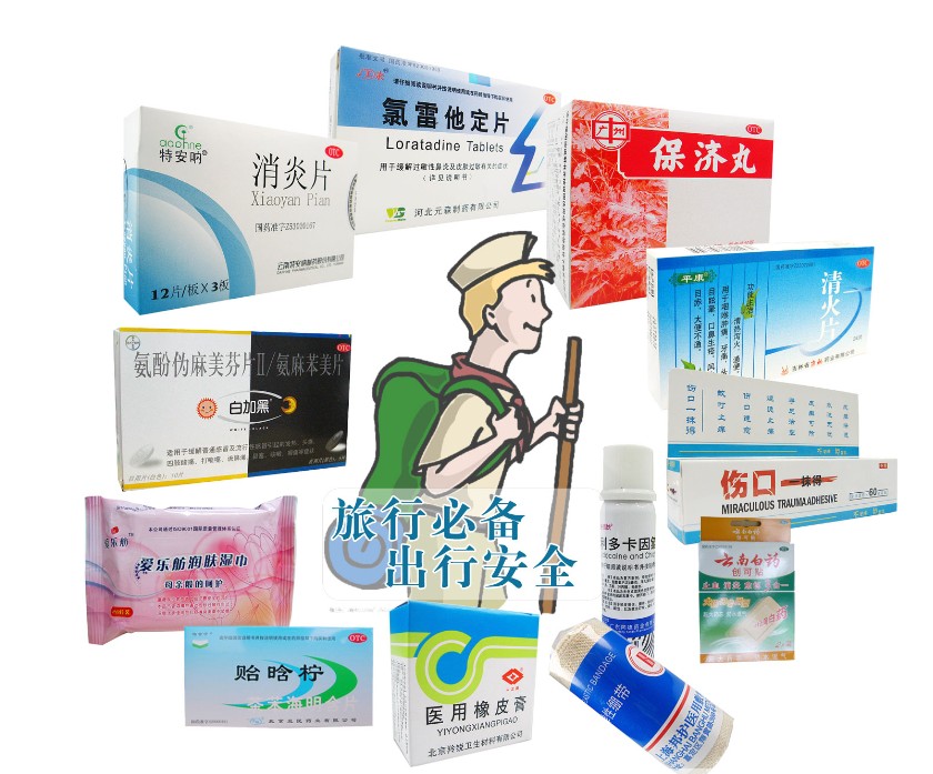 一瓶清水,除了解渴,還可沖洗傷口;毛巾、圍巾,可以擦拭傷口,防止出血,還可驅(qū)蟲(chóng)、防曬等;黃連素、感冒藥、創(chuàng)可貼、繃帶、暈車藥、消毒紙巾、酒精;慢性病患者帶上常用藥,老人還可備盒速效救心丸。