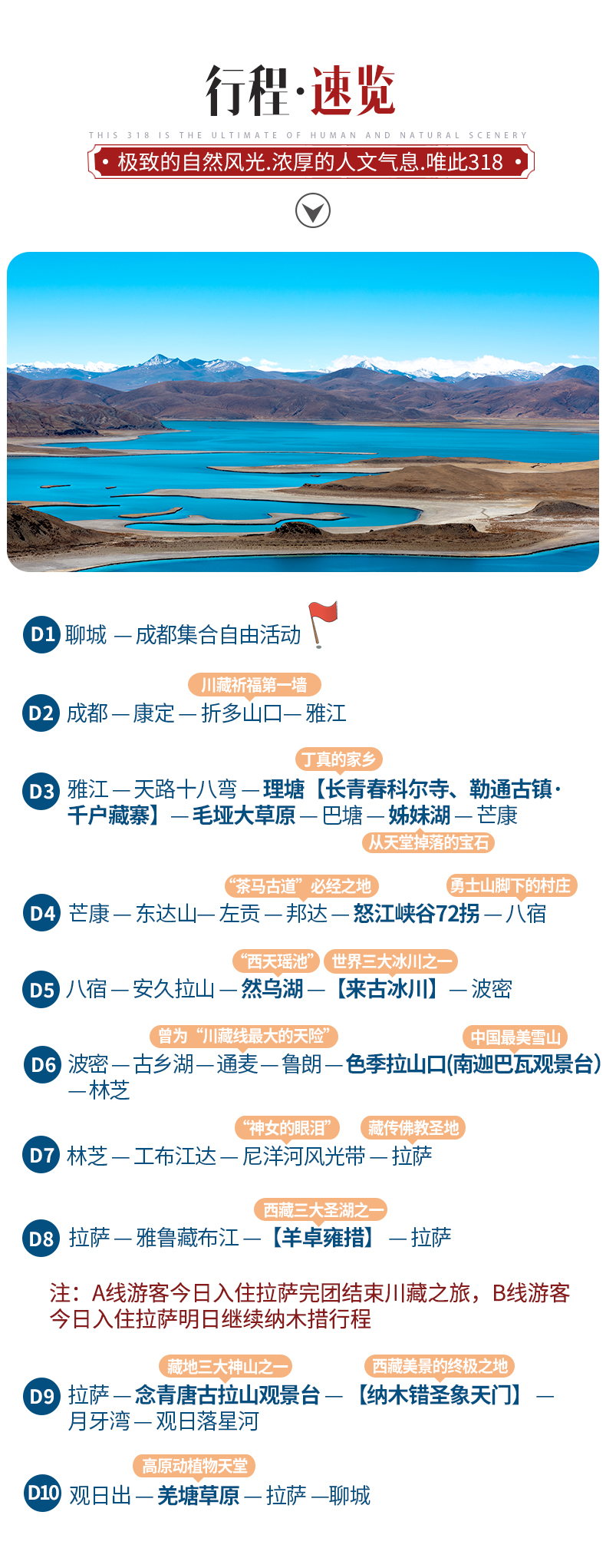 溫馨提示:A線游客今日入住拉薩散團結(jié)束川藏尋春之旅,B線游客今日入住拉薩明日繼續(xù)納木措行程。