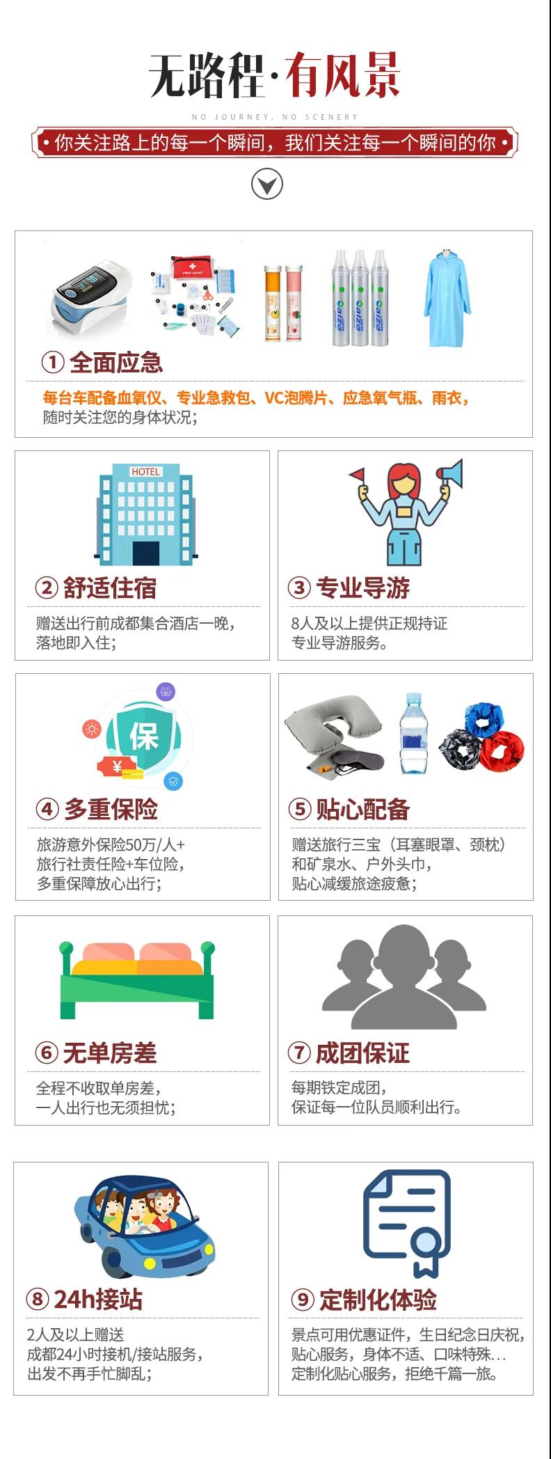 8、進入藏區(qū),沿途有很多便攜廊橋(木、鐵、水泥等)、經(jīng)幡懸崖、湍急的河流等,切勿前往拍照和逗留;如遇見小動物如小狗、牦牛、馬、松鼠等,切忌不要引逗;沿途拍照游覽時,請游客注意過往車輛,切勿橫穿馬路或是在公路中間逗留拍照等;我們行程中及景區(qū)游覽均為自由行,所以請大家對自己的人身安全負責,若在游覽時存在跌落摔倒、打架斗毆、高原反應(yīng)、動物咬傷、游泳或擅自進入景區(qū)未開發(fā)區(qū)域等危險動作,我方不承擔因此帶來的一切損失及賠償責任,望您諒解。
