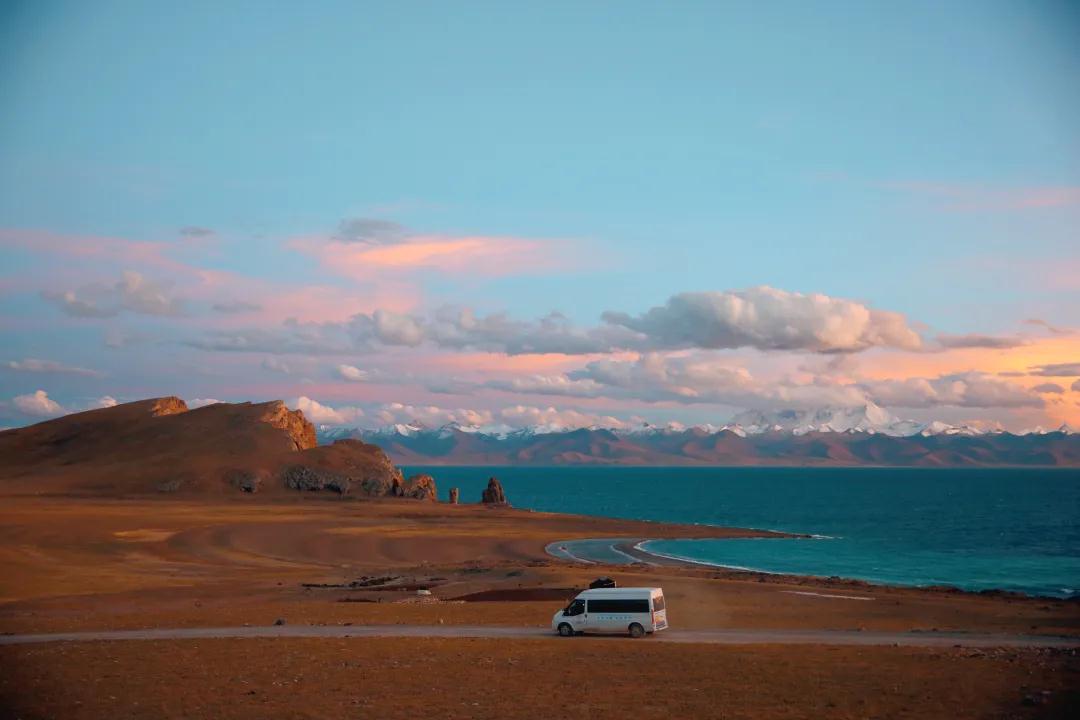 如果天氣晴好,感興趣的小伙伴還可以等待納木措日落星河,去過納木措的人都知道納木措的日落星河是非常漂亮的。看著西方天際線的光線慢慢的減弱,夕陽漸漸墜入納木措的蔚藍之中,那份熾熱點燃了湖面,燒得水天一色,美得仿若不是真實存在;待到最后一絲光芒也散去,納木措夜晚宛如黑白畫卷的天空逐漸爬上幾顆星子,然后就以驚人的速度繁衍開來,高原的顏色實在太濃烈了,天的墨黑也純粹,星的光亮也純粹,這萬里星河,深邃而迷人。