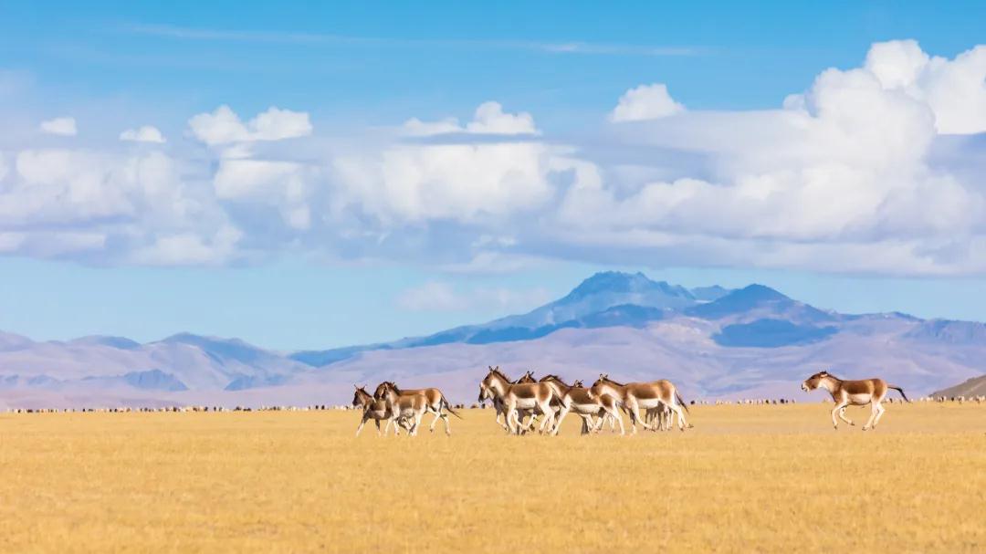 賞完日出,我們翻越那根拉山口,穿越【羌塘草原】,這是一片無人的荒原,卻也是野生動物的天堂。一路上能見到藏羚羊藏野驢,在廣袤無垠的高原草甸上,成群結(jié)隊,自在奔跑,奔跑時帶起灰塵,很快消失在眼前。一路顛簸一路狂奔在這方神秘的高天厚土之上,離塵世越來越遠,離自然越來越近。這里跟我們工作生活的都市仿佛兩個世界,“無人區(qū)”里荒草遍地渺無人跡,億萬年的寂靜很難被打破,站在高原的遼闊天空下,頓覺自己渺小,而有時候,人是要品嘗一下自己的渺小的,才能從浩大之中知道昨日之事今日之愁的微小,才知道皆可拋;走進它,沒有人打擾你,好好享受一番它的莊嚴、靜穆和深邃。