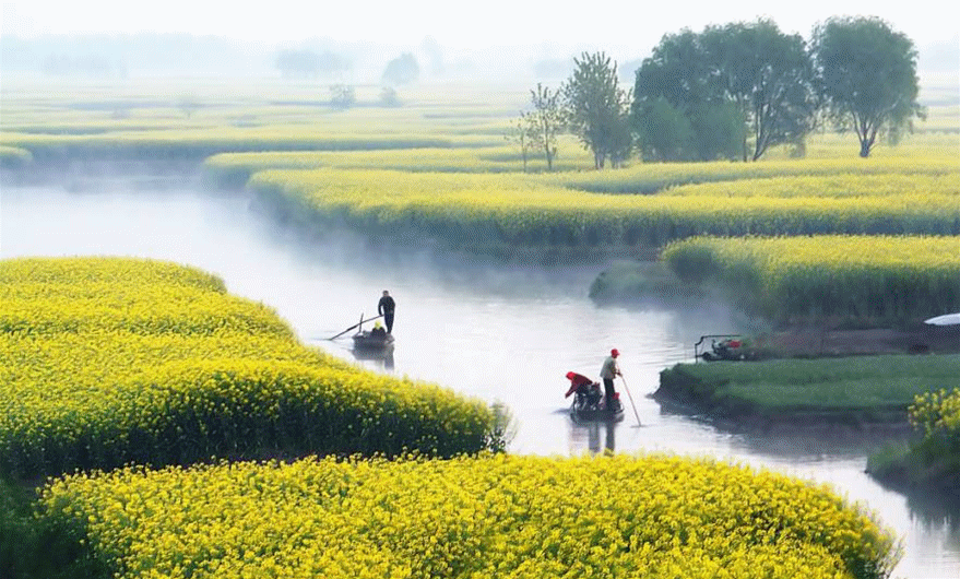 早起集合趕往全國最大的水上油菜花海【千垛菜花垛田風景區】,千垛景區以千島樣式形成的垛田景觀享譽全國,有“千島油菜花”之稱。千百垛田漂浮于水中,云蒸霞蔚,煞是壯觀。垛田是興化市一種獨特的農田地貌,每當枯水季節,百姓們就將低洼地區水中的泥土挖上來,堆積到較高的地方,形成了一塊塊水中小島式的垛田。置身其中,如同走進古人擺設的水中“龍門陣”。乘坐搖櫓船在油菜垛田間穿梭,‘舟行碧波上,人在畫中游’的詩情畫意在這里盡顯無疑。盡情暢玩后回返聊城。