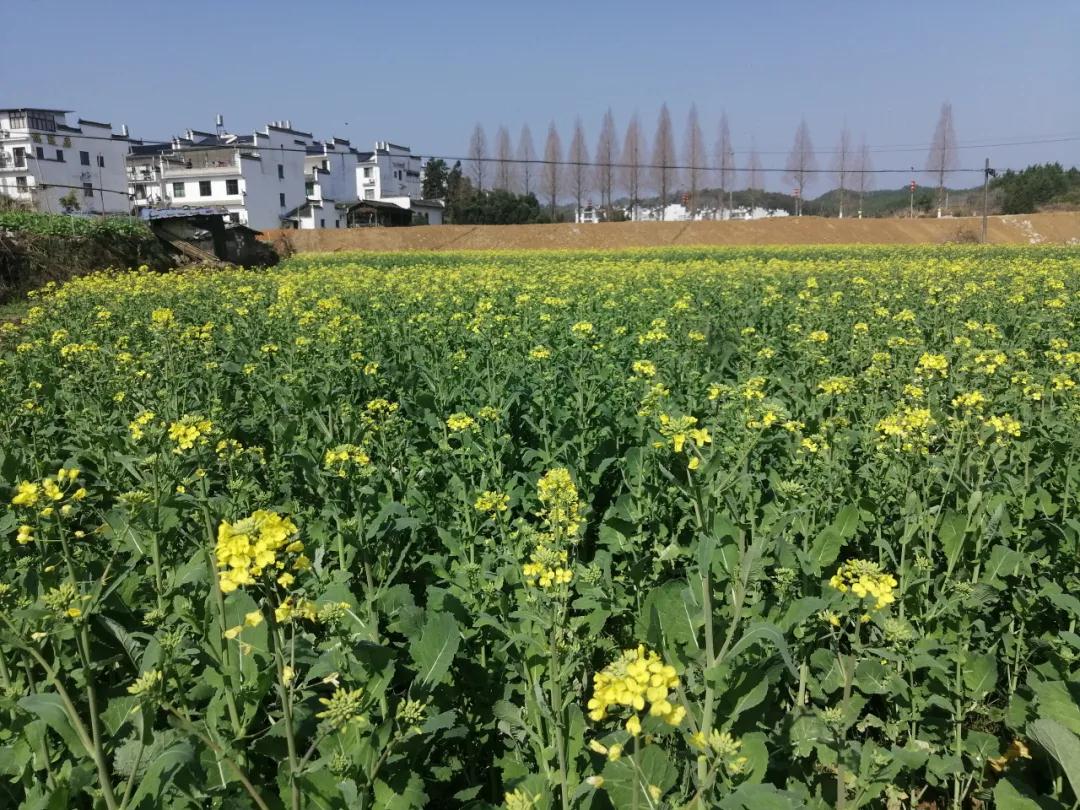 思溪延村景區及沿線:屬于田園式平原型油菜花,大部分油菜正處于抽芯完成至含苞待放階段,村落周邊部分已開放并可觀賞。