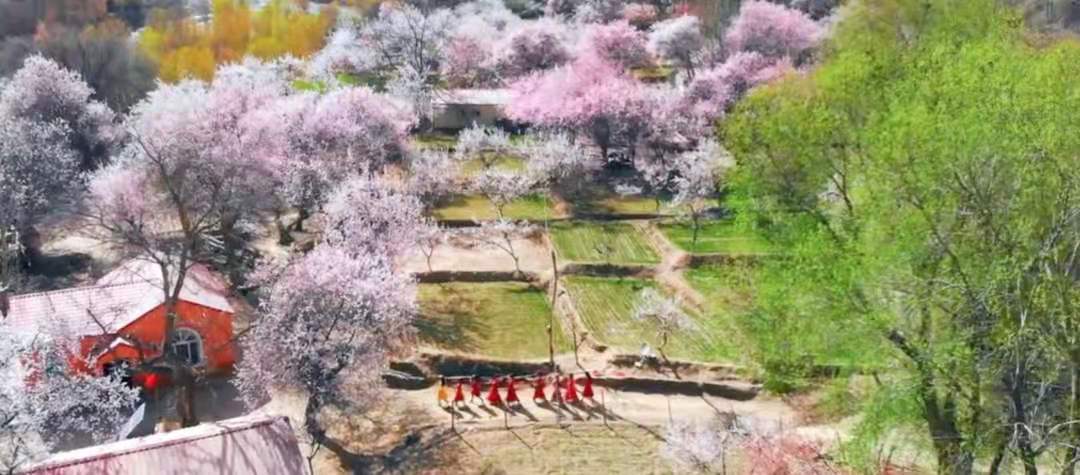 五個(gè)月的漫漫長冬過后帕米爾高原的雪融化了,冰川下的杏花開了……