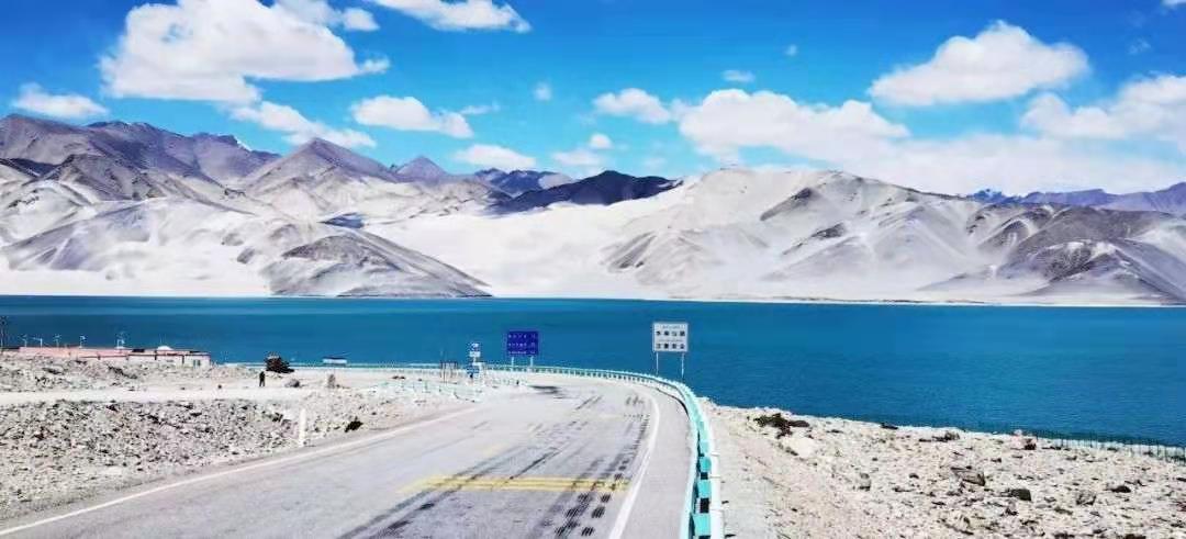 【中巴友誼雪山路】行駛在中巴友誼雪山路上,遠(yuǎn)望奧依塔克紅山、近距離拍攝布倫口白沙湖,站在高原湖泊-卡拉庫里湖邊,看慕士塔格峰的礦石奇景。