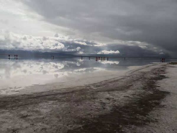 但是接近茶卡鹽湖的時候奇跡出現了,天放亮了,雨漸漸的小了,而我們進入景區的時候,雨突然停了。太陽也越出了云層,向我們微笑著招手。大家歡呼了,真是上天保佑我們能看到鹽湖了。