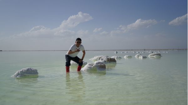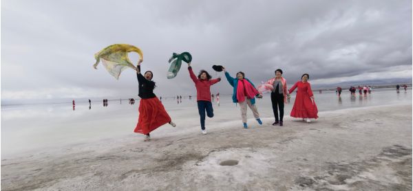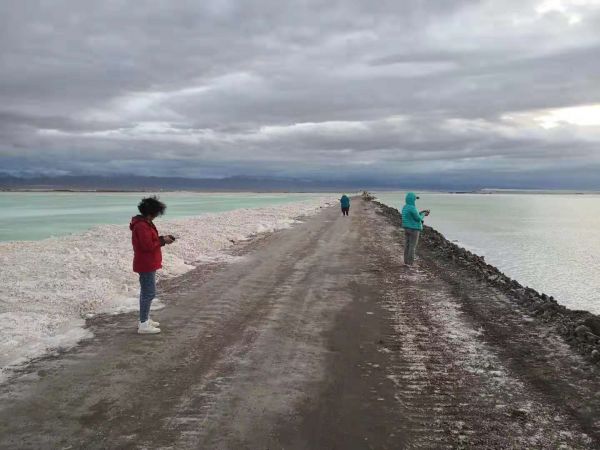 「我們」? 到達了全是鹽花的察爾汗鹽湖