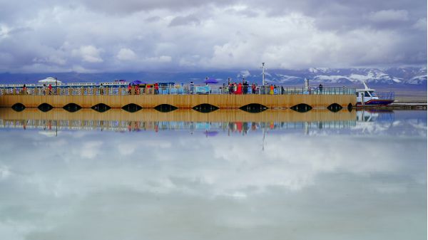 茶卡鹽湖,別稱茶卡或達布遜淖爾,是位于青海省海西蒙古族藏族自治州烏蘭縣茶卡鎮的天然結晶鹽湖,是柴達木盆地四大鹽湖之一。"茶卡"是藏語,意即鹽池,也就是青海的鹽;"達布遜淖爾"是蒙古語,也是鹽湖之意。