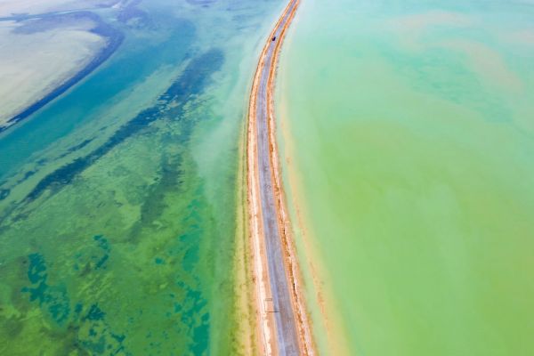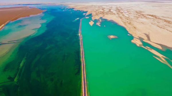 西臺吉乃爾湖俗稱“雙色湖”,此湖被G315國道從中穿過,將湖面分為兩半,一側(cè)湖水因富含銅離子而呈現(xiàn)淺綠色,一側(cè)湖水因含有硫酸亞鎂而呈深藍(lán)色,奇特又漂亮,被戲稱為“鴛鴦火鍋”。