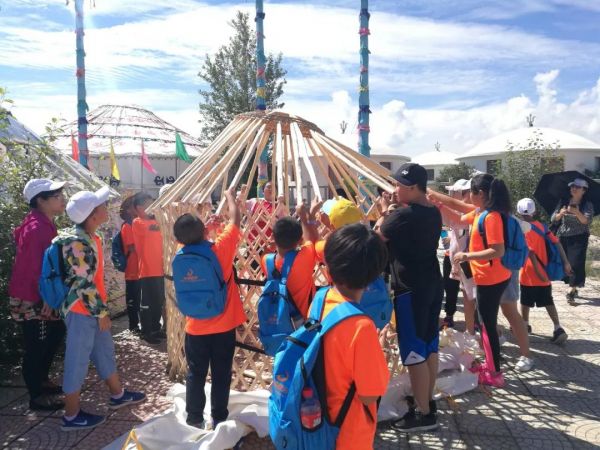 體驗草原風(fēng)情:炫酷電瓶車、勒勒車。為了更好的體驗蒙古族的牧民生活,分組團隊協(xié)作搭建蒙古包,輔導(dǎo)老師作為評委,由當?shù)啬撩裼H手教學(xué)。