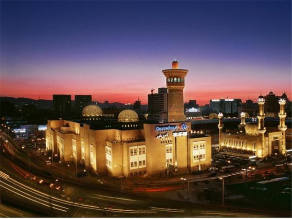 在建筑風格上,準確使用最本質、最有生命力的因素,采用土黃色為主色調,融合了希臘、古羅馬、西亞、中亞建筑因素,使之成為烏魯木齊的標志性建筑之一。集伊斯蘭文化、建筑、民族商貿于一體,是新疆旅游產品的匯集地和展示中心。濃郁的伊斯蘭建筑風格,重現了古絲綢之路的繁華,集中體現了濃郁的西域民族特色和地域文化。