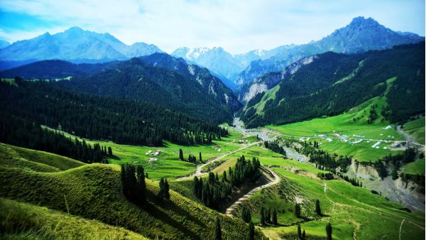 景點:尼勒克大峽谷,伊犁河谷,察布查爾縣設監管,伊昭公路白石嶺風景區,盤山公路,入住昭蘇酒店。