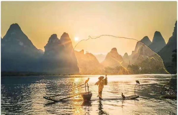1.拱橋、老翁、魚鷹:美麗的桂林山水配合環境搭配經典的畫面場景,記錄這動人的山水之大美;
