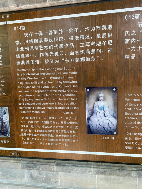 麥積山因山形似麥垛而得名。麥積山石窟始建于384-417年。存194個窟龕、7000多尊造像、1000平方米壁畫,被譽為東方雕塑藝術陳列館。是我個人非常喜歡的景點,集人文、風光于一身,兼具知識性與趣味性。