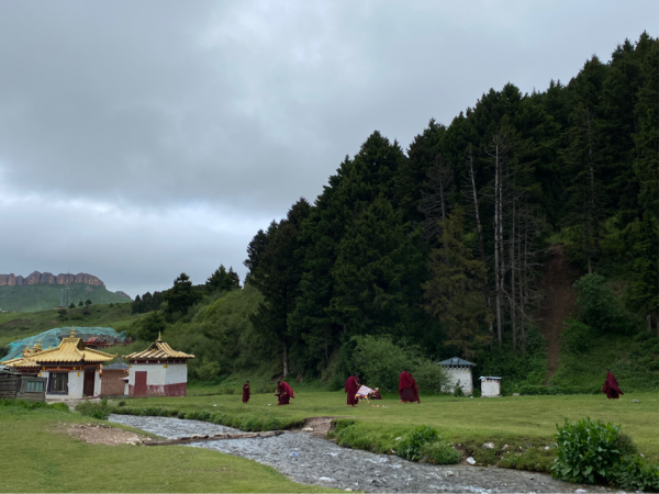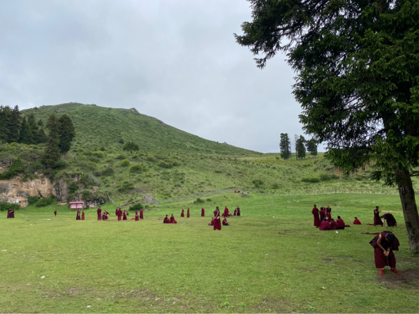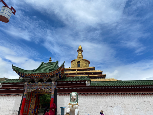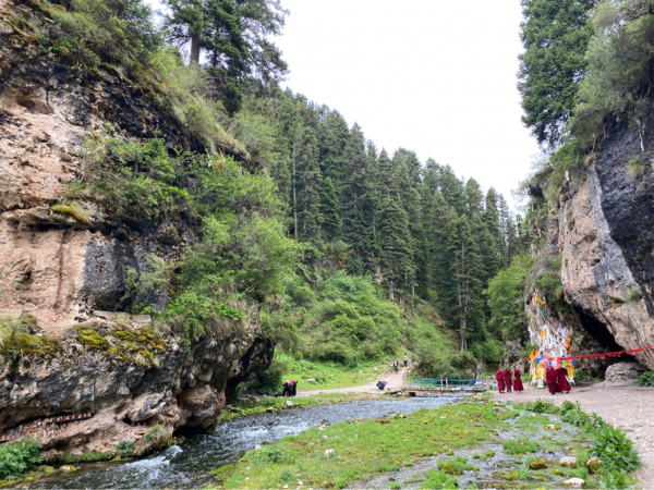 因為后邊有更大的拉卜楞寺,所以不具體介紹了。相較而言,郎木寺可以更好地觀察僧人的生活,小僧人們打羽毛球、放風箏、修房子干啥的。拉卜楞寺建筑更宏大,管理更規范,這方面看不到。這邊還有個峽谷,但是過于濕滑,就沒走了。轉經筒出口的門有點低,頭頂撞了一個包,寧波爺爺說是撞大運了。