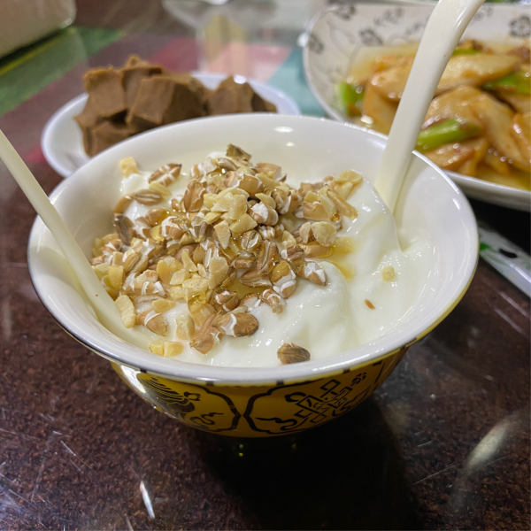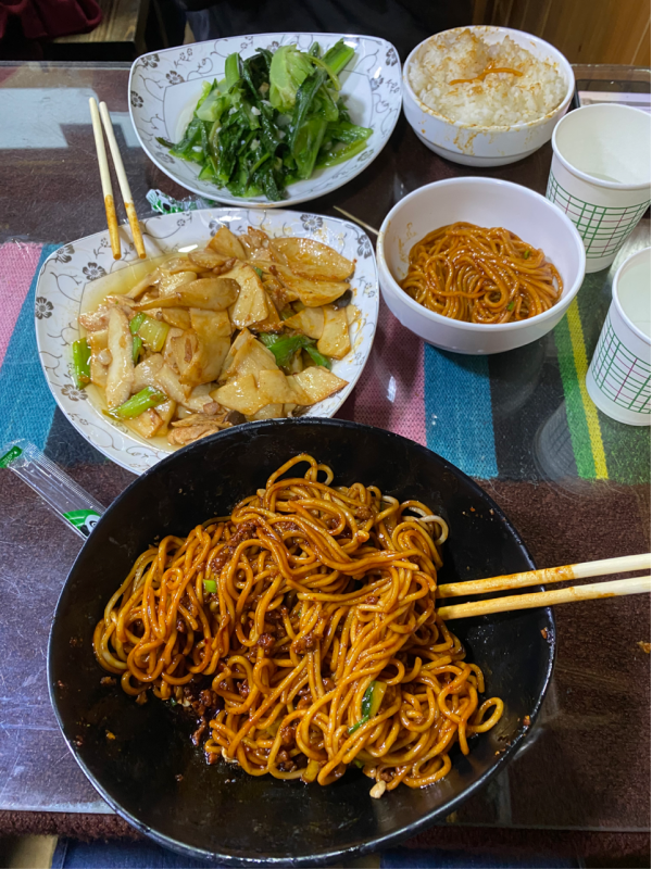 不過空氣總算清新,游覽結束,回到住處。帶著團里的叔叔阿姨們去“隴源小灶私房菜”吃飯。當地人很多,等上菜半小時有余,砂鍋豆腐和牛奶雞蛋醪糟不錯~紅油實在吃不慣,無奈接下來幾天川菜口味居多。