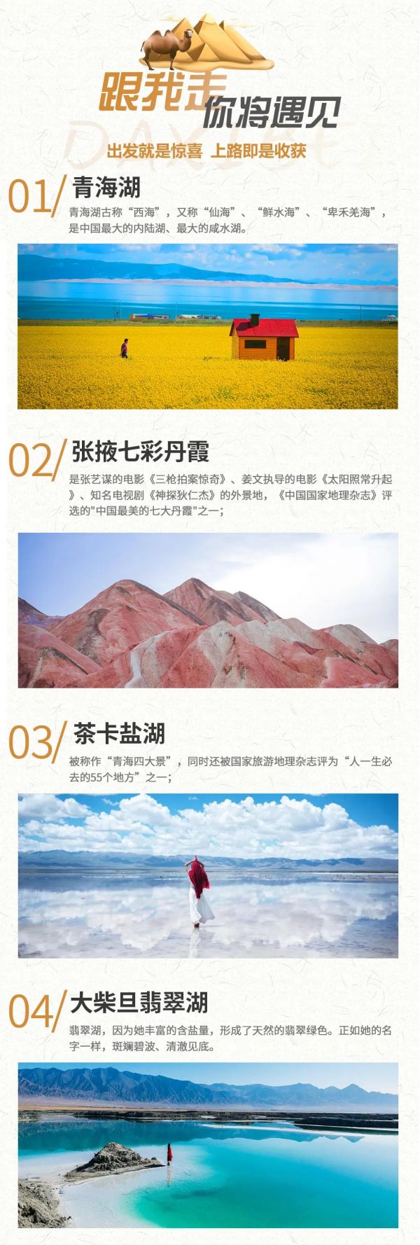 丹霞地質公園+嘉峪關+敦煌+莫高窟+鳴沙山月牙泉+阿克塞石油小鎮+大柴旦翡翠湖+柴達木盆地+茶卡鹽湖+青海湖二郎劍景區+塔爾寺