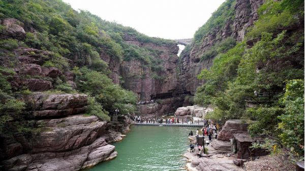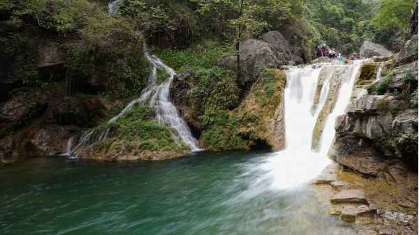 餐后前往云臺(tái)山,登山游覽小寨溝方向。小寨溝相傳為隋末農(nóng)民起義英雄劉武周和唐太宗李世民安營(yíng)扎寨之地。谷底巨石矗立,溪流涓涓;三步一泉,五步一瀑,十步一潭,被譽(yù)為“潭瀑川”。溝內(nèi)冬春溫和,夏秋涼爽,又稱(chēng)“長(zhǎng)春溝”。最為壯觀的為丫瀑潭,瀑高20余米,上下相連,形成一個(gè)“丫”字形,瀑下積水成潭,翡翠碧綠,面積百余平方米,潭周?chē)写笃_(kāi)闊地,可供游憩。