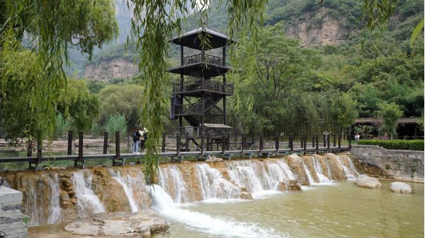 還有“水簾洞”、“鳳尾串珠”、“白蛇出洞”、“神龜吐珠”“蒼龍噴霧”等水景。溝的盡頭,絕壁環(huán)抱,仰視蒼宇,有坐井觀天之感。在溝坳中,泉水匯聚成一淺水湖泊,傳說(shuō)是李世民的飲馬池。泊中奇石多姿,有蝴蝶石、試劍石、點(diǎn)將臺(tái)、石舟等勝景。