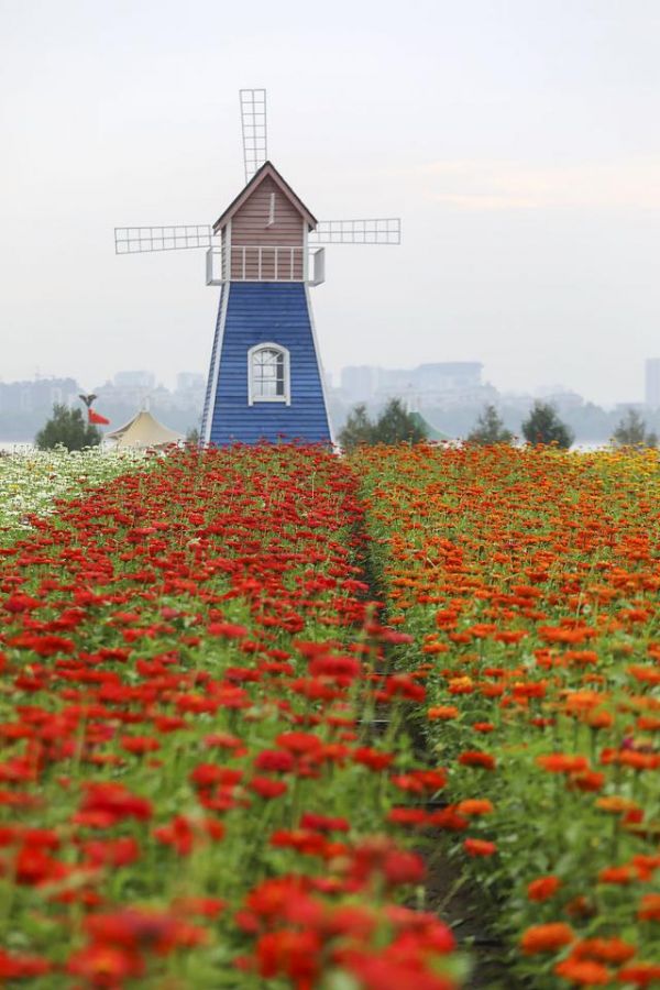 在市區廣場或公園里,也可以隨處遇到五顏六色的步步高(百日草)花海,五彩斑斕,蕩人心魄。一叢叢不同顏色地盛開在一起,宛如海洋一般浩大,五彩繽紛的色彩點綴其間,營造出來的美感壯觀讓人震撼。