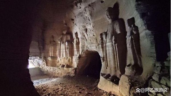 所謂龍洞,是一個東西相通,長約百余米的悠長山洞。洞內非常寬敞,初入洞穴便是一處高敞穹隆石室,石壁是古人所刻的佛像。洞內氣溫常年維持在30度以上,絕對是避暑的好去處,堪稱自然界的空調。
