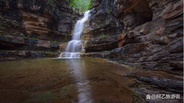 佛峪深處藏有一處瀑布,夏季水流充沛,落差目測有6-7米。瀑布上下有三層小階梯,水流不算湍急。瀑布四季有水,但在冬天會出現冰掛,又是另一番景色。