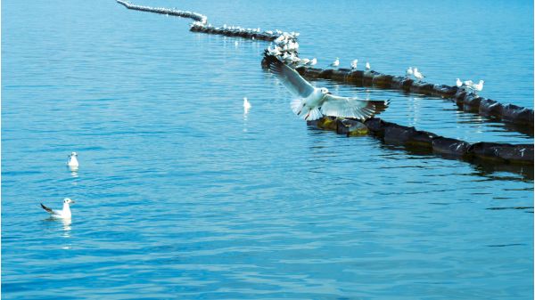 清晨,這里的海鷗全部集中在一起,當游客靠近之時,它們成群結隊地離開水面飛向遠處,不一會兒又全部飛回來,落入水中,時而盤旋飛舞,時而在水中嬉戲,一幅生動的畫面展現在眼前。