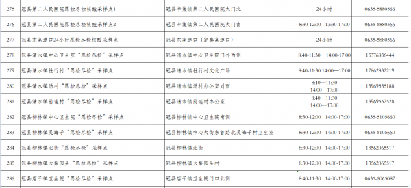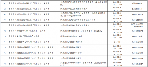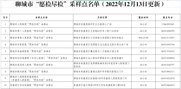 聊城市“愿檢盡檢”采樣點名單